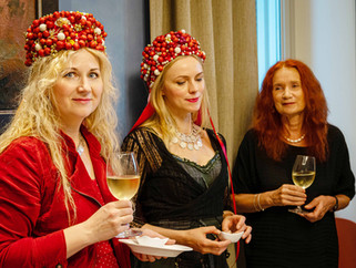 Kristiina Ehin ja Katrin Laidre kandsid Eesti kogukonnapäeval Hiiu pruudipärga - seplit - mis meenutab väga ka Ukraina naiste peaehteid.